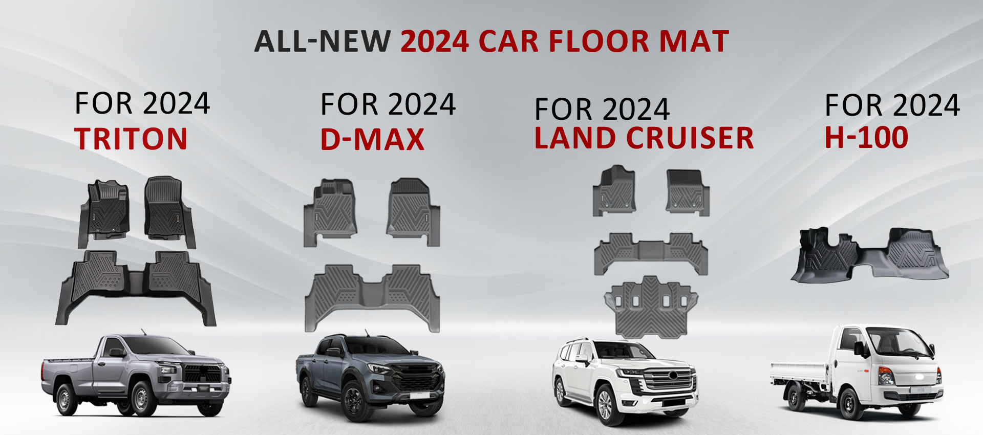 We have finished the car mat mold for 2024 Land Cruiser and have started to produce the car floor mats. It is a 4 piece combination set like the foot mat for most SUV models. 5D design provides good coverage and protection; Similarly, we also support customer customization.
