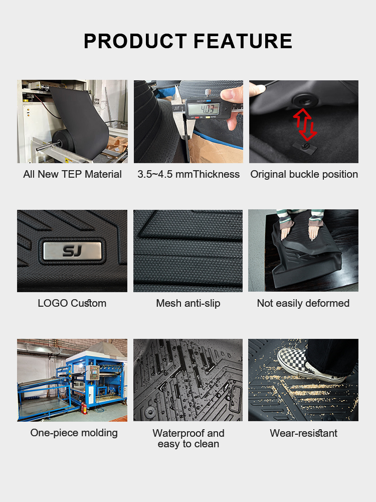 Product Display About SJ Factory - High Quality Car Floor Mats Guangzhou SJ Car Accessories Co.,Ltd. Was established in 2002.We are a factory devoted to development, production and sales ofinternal and external car accessories. We have more than 23 years experience in designing and manufacturing automotive products Our products are exported to North America, South America, Southeast Asia, and the Middle East.more than 40 countries and regions. currently has more than 320 agents and co-cients.