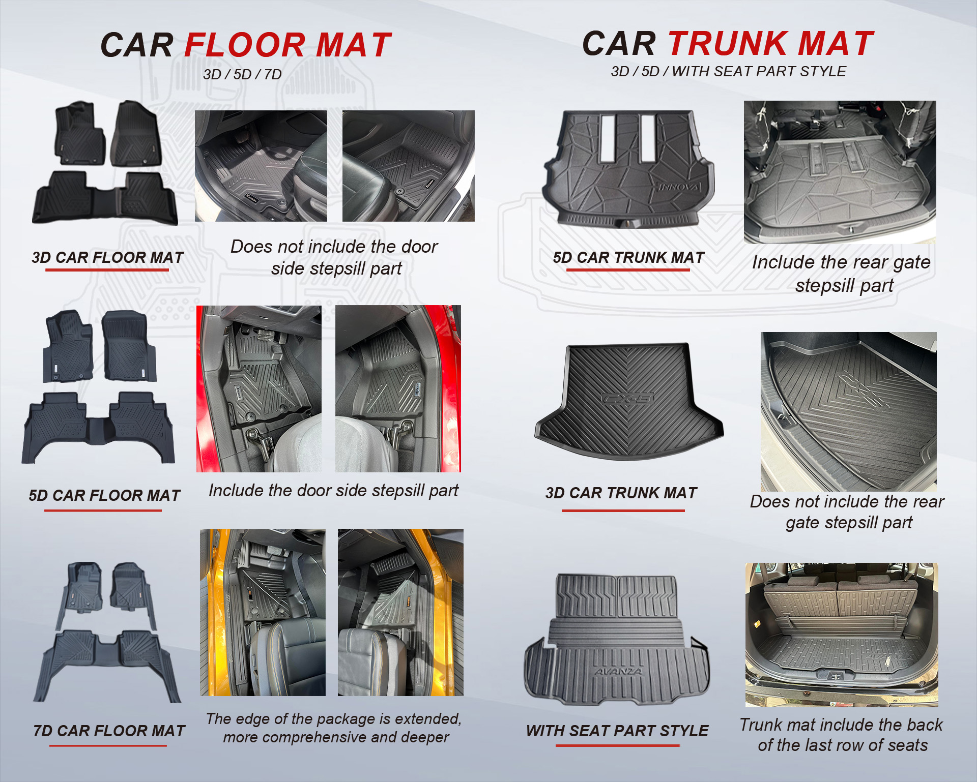 High Quality Car Trunk Mats/Boot Liners